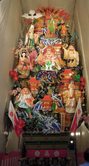 川端の明治通り沿いに飾られている博多リバレインの飾り山。 このエリアには舁き山の大黒流があります。 この大黒流、今年は7年に1度順番が回ってくる一番山です。 表は歌舞伎の蓮獅子を、見送りは七福神をテーマに、大黒流の一番山を祝っています。(4) | ||||||||||||||||||||||||||||||||||||||||||||||||||||||||||||||||||||||