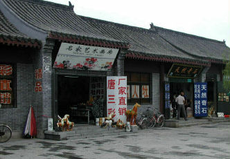 決して賑わっている訳ではないのですが(笑)、土地柄もあってか、左の写真の店には「名家芸術画廊」「唐三彩」「天然奇石」の文字が。