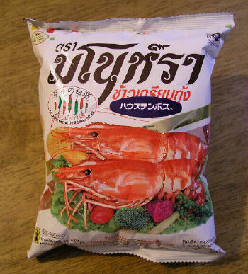 長崎と言えば,グラバー邸やオランダ坂,大浦・浦上の両天主堂などを思い浮かべますが,最近の子供達にはハウステンボスの方が人気のようです。 で,土産にとハウステンボスから持ち帰ってきたのが今日の写真,タイのスナック菓子「マノーラ」です。 この「マノーラ」,バンコクの空港では缶入りのものが 100バーツ(約270円:2003〜2004年頃)で売られていました。 エビ味の軽いスナックで,チョットしたビールのつまみとして土産にもオススメです。 ちなみに同じ缶入りは,バンコクのスーパーでは 30バーツ(約80円)で入手できました。 この袋入りは,バンコクでは恐らく 10バーツ(約27円)くらいでしょう。 いくらで買ったか尋ねたところ,「200円しないくらいだったかなぁ...」と言ってました。 日本国内でも,輸入食材を扱っている店では入手可能なようですので,ちょっと割高ではありますが, ご賞味されては如何でしょうか。 | ||||||||||||||||||||||||||||||||||||||||||||||||||||||