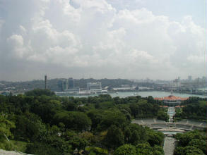 地上37mの景色は如何でしょうか? 南に目を向けると,たくさんの船が行き交ってますねぇ。 中近東から日本に来る石油も,一部はここを通って来るのです。 遠くに見えるのは,インドネシアの島です。 北を望めば,緑多いセントーサ島と,海峡をはさんだ向こうにシンガポール「本島」が見えます。 街の中心街からは少し離れているので,心が安らぎます。 セントーサ島のシンボルに登った後は,10年前には無かった「あの」場所に行ってみましょうか。 今回セントーサ島に来たのは,実は「あの」場所に行きたかったからなのです! | ||||