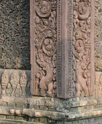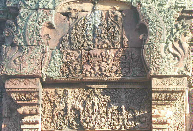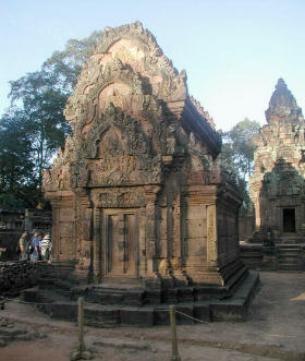バンテアイ・スレイについては幾多の方々がご紹介されていますので,特別珍しい訳でありませんが,このサイトでは編集部で調べ上げた範囲で少しでも映像を楽しめる解説ができればと努力しています。 少々食傷気味かもしれませんが,もう少しおつきあい下さい。 さて,次は朝の陽光がちょっと届かない西から北側の方に足を進めてみましょう。 あの「東洋のモナリザ」に会えるのも,もうすぐです。