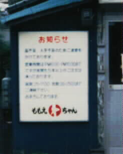 とうとう在宮中に行き出さなかった,花が島の10号線沿いのモモ焼きの名所「丸花ももえ ちゃん」。 ギャル(かどうか知らないけど)のセクシーな看板が売り! だったけど, 実際はオバチャンが店を切り盛りしていたとか・・・。 誰か行きました? 今もあるの かなぁ? ピンボケ写真でゴメンナサイ。